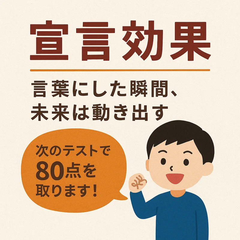 「次のテストで満点を取ります。」教室で、ある生徒がそう口にしました。その表情には、少しの不安と、大きな決意が混ざっていました。この一言が、未来を変える第一歩なのです。心理学の『宣言効果(アファーメーション効果)』とは、目標を言葉にすることで、実現の確率が高まるという現象。言葉にした瞬間、人は言った自分を裏切りたくないという心理が働き、行動が変化していくのです。