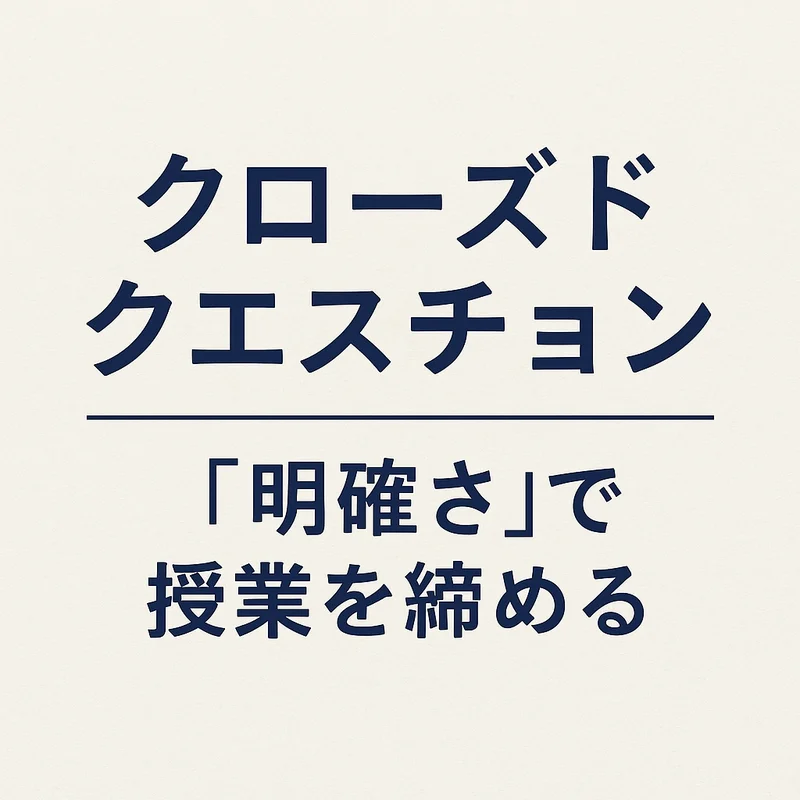 授業をしていると、どうしても「説明する側」に熱が入ってしまう時があります。気づけば一人でしゃべり続けて、生徒の目が泳ぎ始める…。学習塾の先生なら、誰もが一度は経験したことがあると思います。そんな時に、私が意識して使っているのがクローズドクエスチョンです。「はい・いいえ」で答えられる。「AかBか」で選べるなど、ただそれだけの質問なのに、授業の流れがピタッと締まるのです。