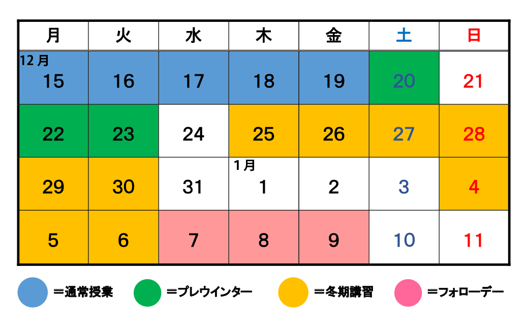 冬期講習スケジュール